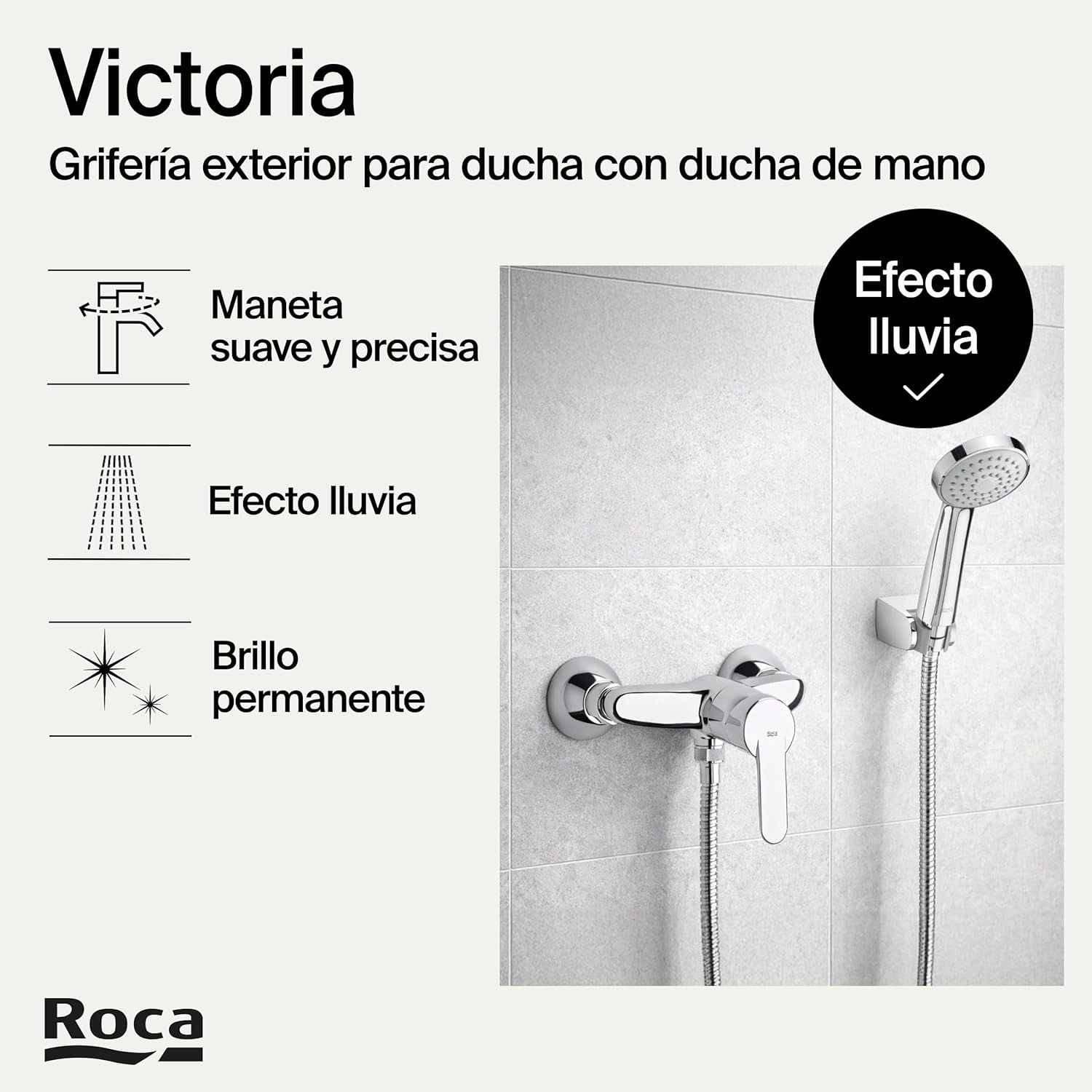 MDO. DUCHA VICTORIA de ROCA es un producto de la categoría GRIFERIA DUCHA diseñado para regular el agua de la ducha con comodidad y fiabilidad. Está pensado para integrarse con solvencia en proyectos de baño, aportando una combinación equilibrada de funcionalidad, presencia estética y practicidad en el uso diario.