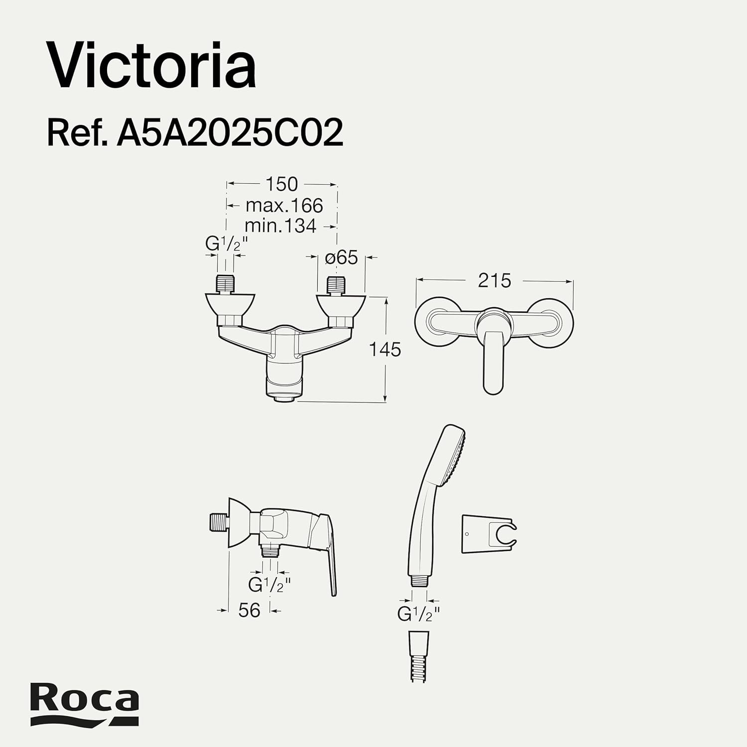 - Resumen de ficha: Roca,Victoria,Grifería monomando exterior para ducha con ducha de mano, flexible de 1,50 m. y soporte de ducha articulado,A5A2025C02